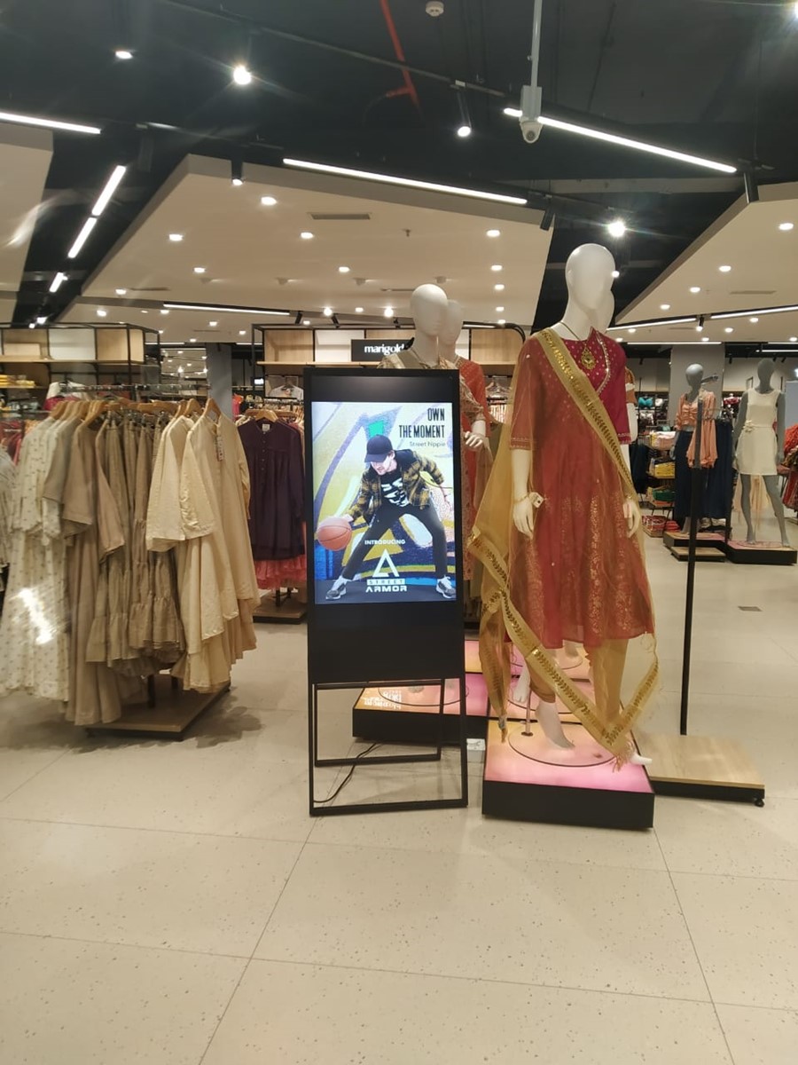 In the retail and showroom environment, digital standees are widely used for promotional displays, product launch visuals, and seasonal campaign messaging.